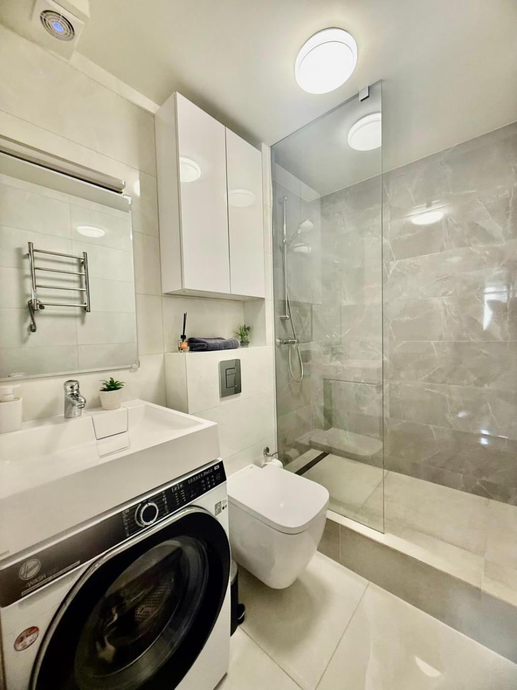 Studio. The studios kitchenette is available for cooking and storing food. This studio has a private bathroom and a washing machine. The unit has 2 beds. Studio - 3 osobowy. Powierzchnia pokoju ok.: 22 mkw.